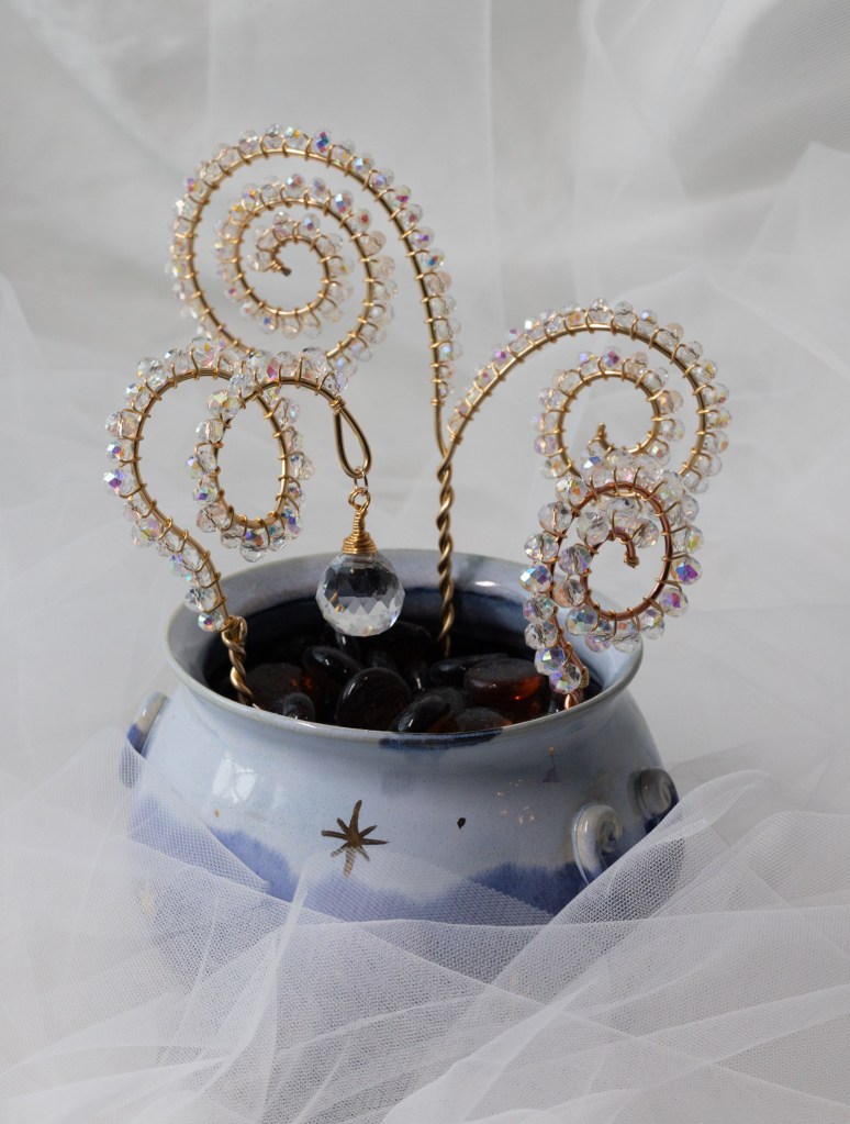 I’m Bethany. I create suncatchers, plant stakes, earrings, and other glass-and-wire objects as a way of inviting light, color, and play back into everyday spaces. What began as a personal project – adding sparkle to my home to ease winter’s gloom – has grown into a deeply grounding and joyful creative outlet.
